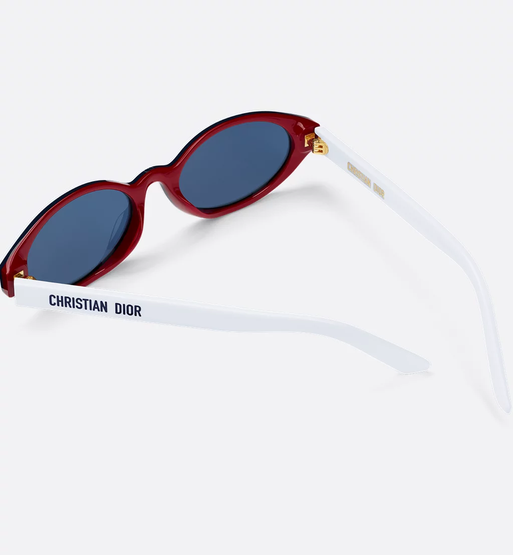 Part of the Dior Vibe capsule, the DiorPacific R1I sunglasses elevate the line with a contemporary low oval shape. The acetate frame front has a triple-layer effect in white, navy blue and red adorned with gold-finish star details on the front, while the white acetate temples feature the Christian Dior signature. Completed by blue lenses, the essential style will lend a sportswear touch to any look.