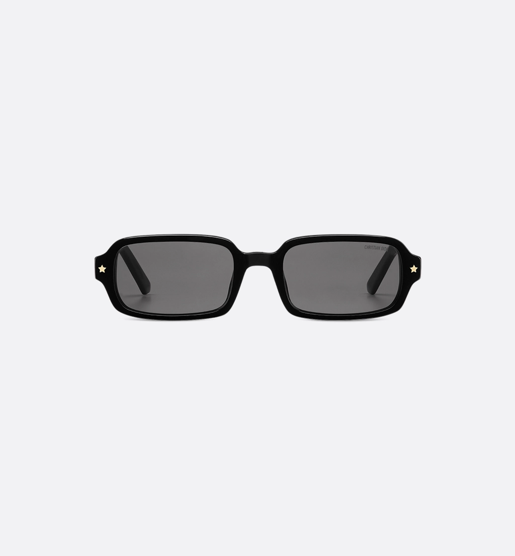 The DiorPacific S3I sunglasses elevate the line with a contemporary low rectangular shape. The black acetate frame is adorned with gold-finish star details on the front, while the temples feature the Christian Dior signature. Completed by gray lenses, the essential style will lend an elegant touch to any look.