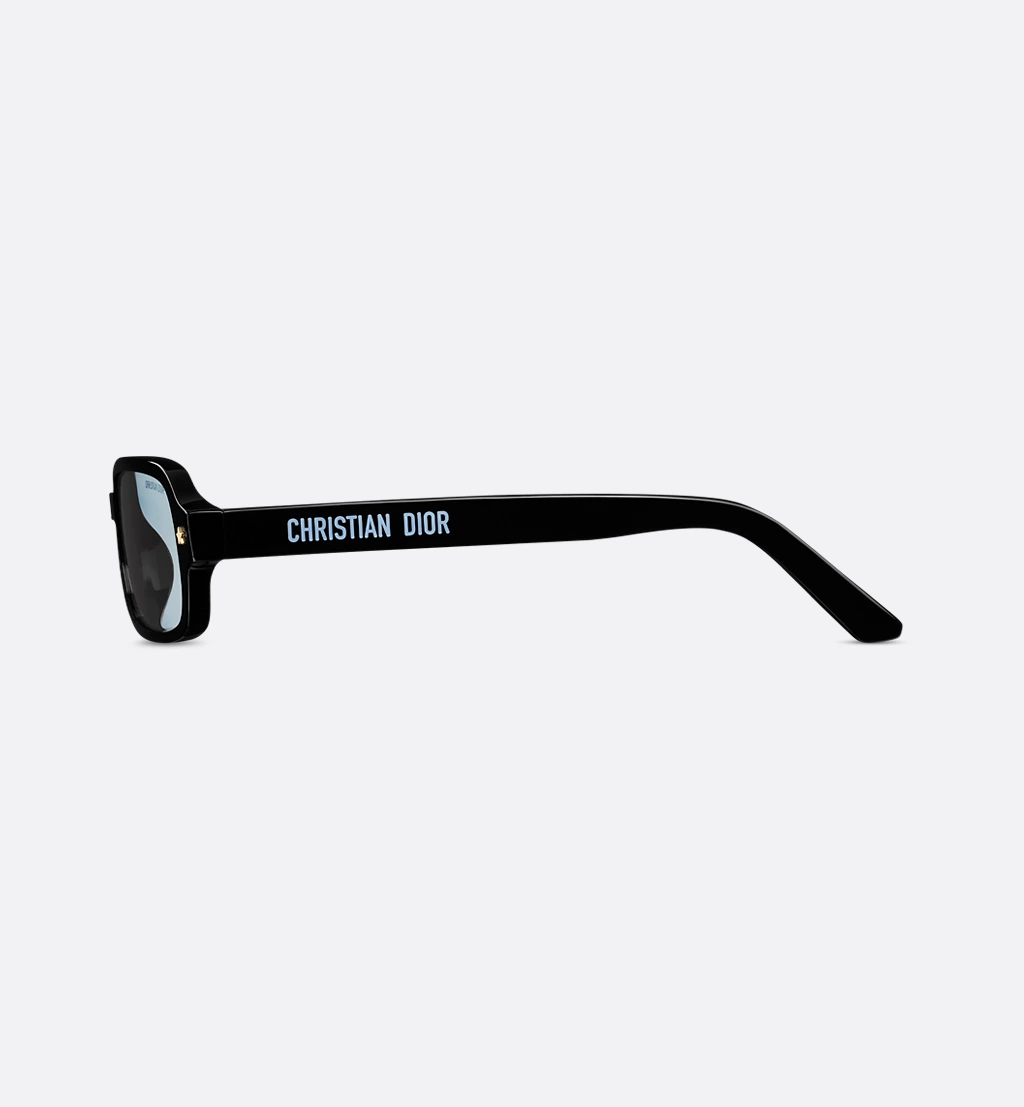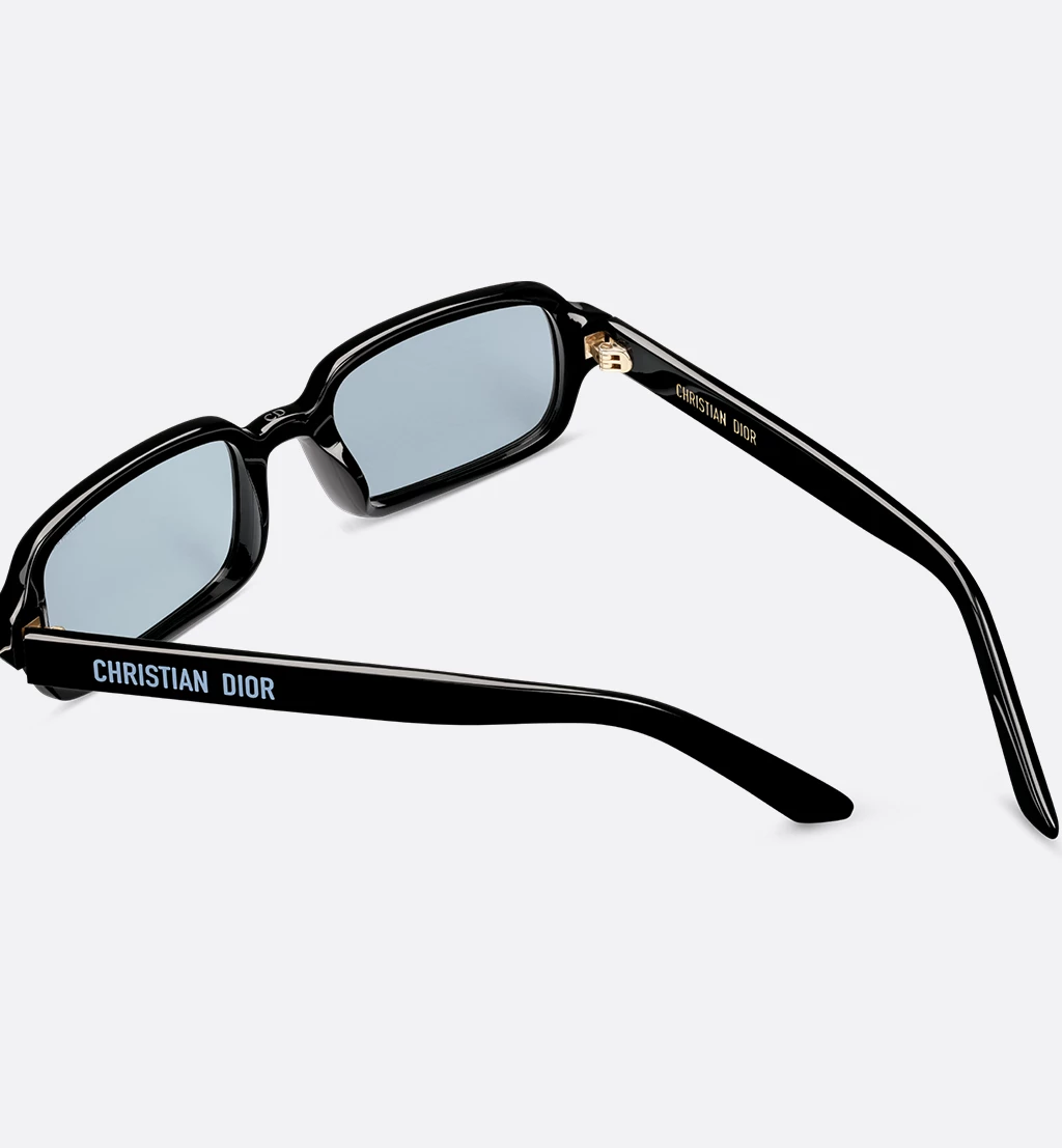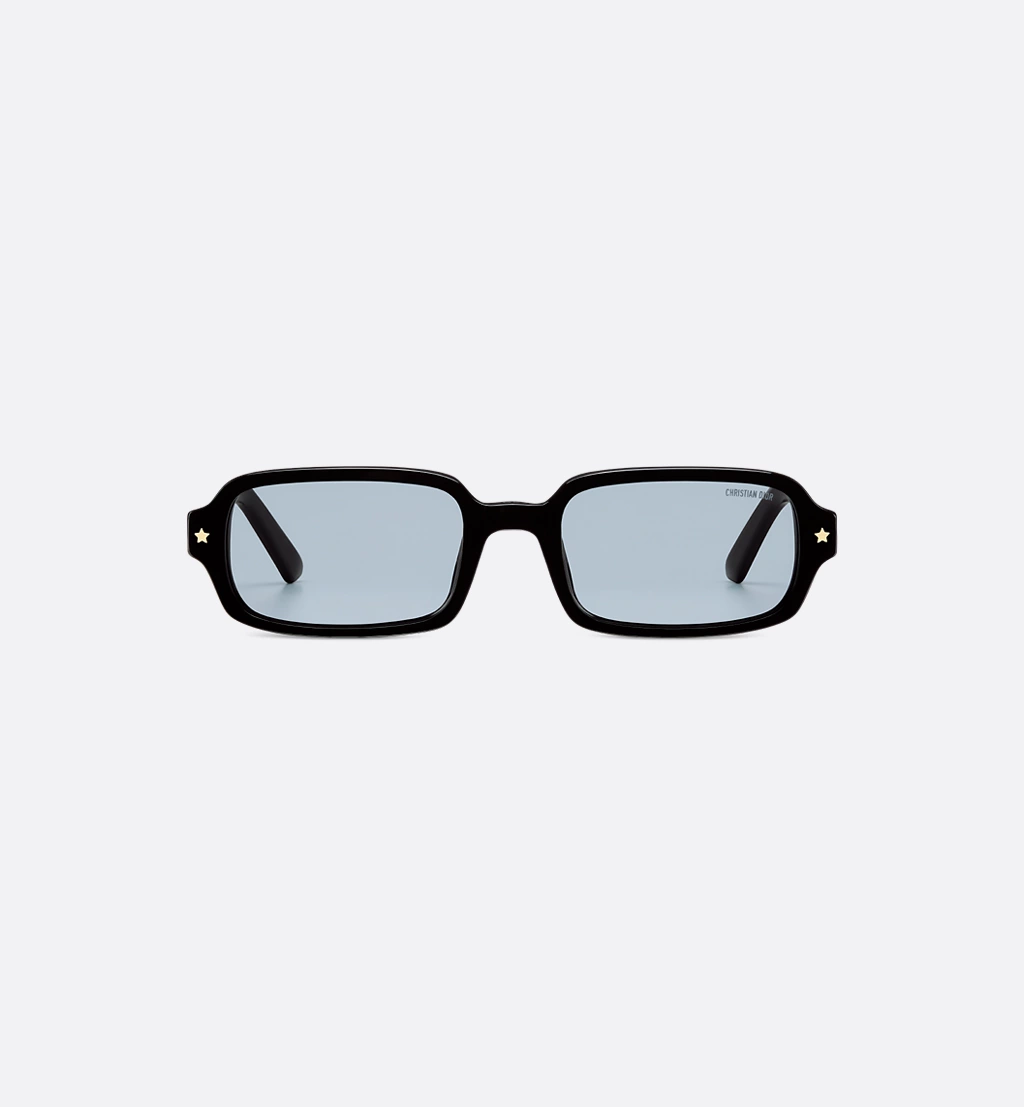The DiorPacific S3I sunglasses elevate the line with a contemporary low rectangular shape. The black acetate frame is adorned with gold-finish star details on the front, while the temples feature the Christian Dior signature. Completed by blue lenses, the essential style will lend an elegant touch to any look.